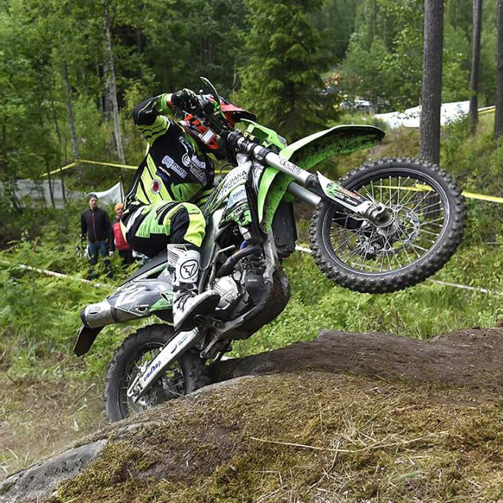 scarico appositamente sviluppato per il Team Lunigiana Enduro, con doppio collettore in acciaio, uno dotato di camera di espansione per le condizioni più estreme e uno con un leggero rigonfiamento del tubo, in titanio il silenziatore munito di dB-killer